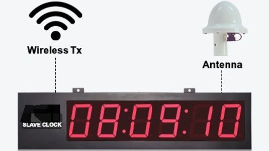 GPS Clock offers an easy, cost-effective solution for accurate, synchronized time displays without expensive, disruptive installation procedures. Because there are no wiring requirements, installation times are drastically reduced. It is ideal for renovation projects, as there is no need to worry about installation work, as well as new construction. The GPS clock can be synchronized through GPS Antenna or Wireless Antenna. The display can be wall/panel / table top mountable. It can be used as a wireless clock to synchronize many wireless slave clocks in and around the buildings.